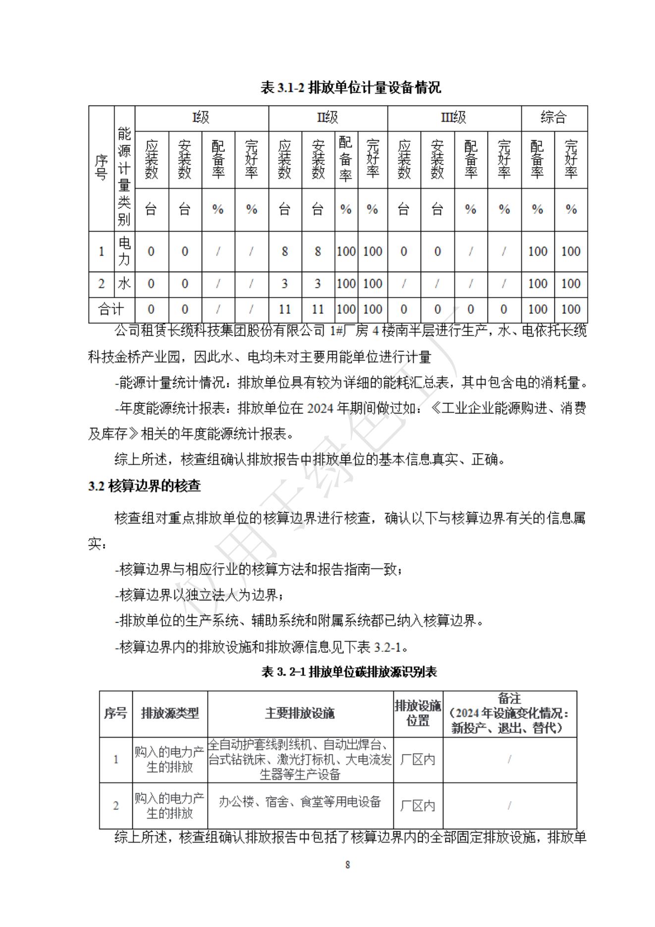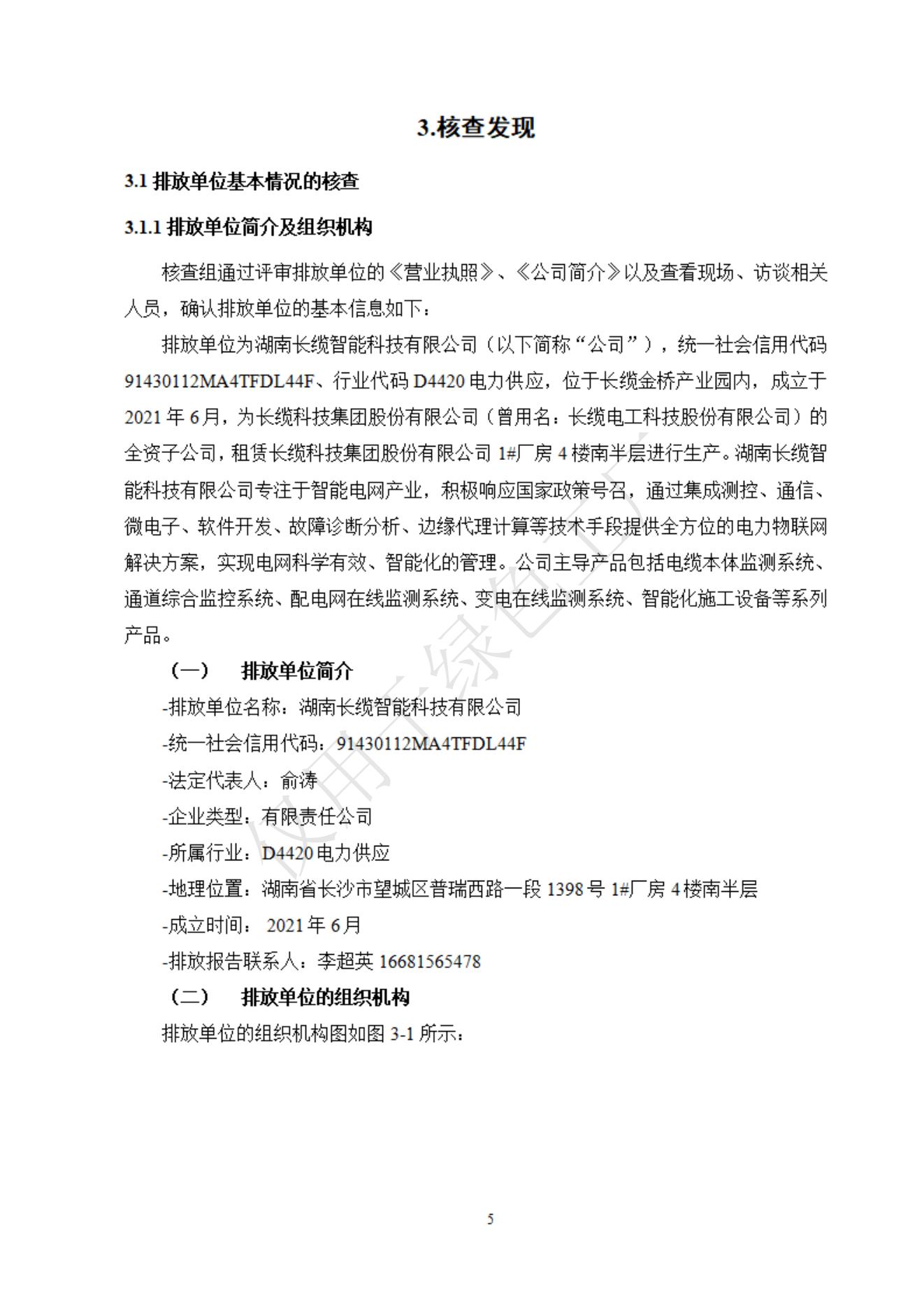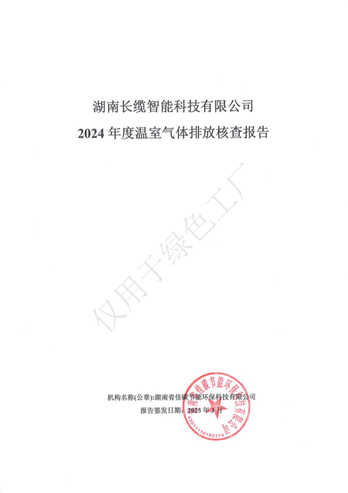 湖南長纜智能科技有限公司2024年度溫室氣體排放核查報告信息公示