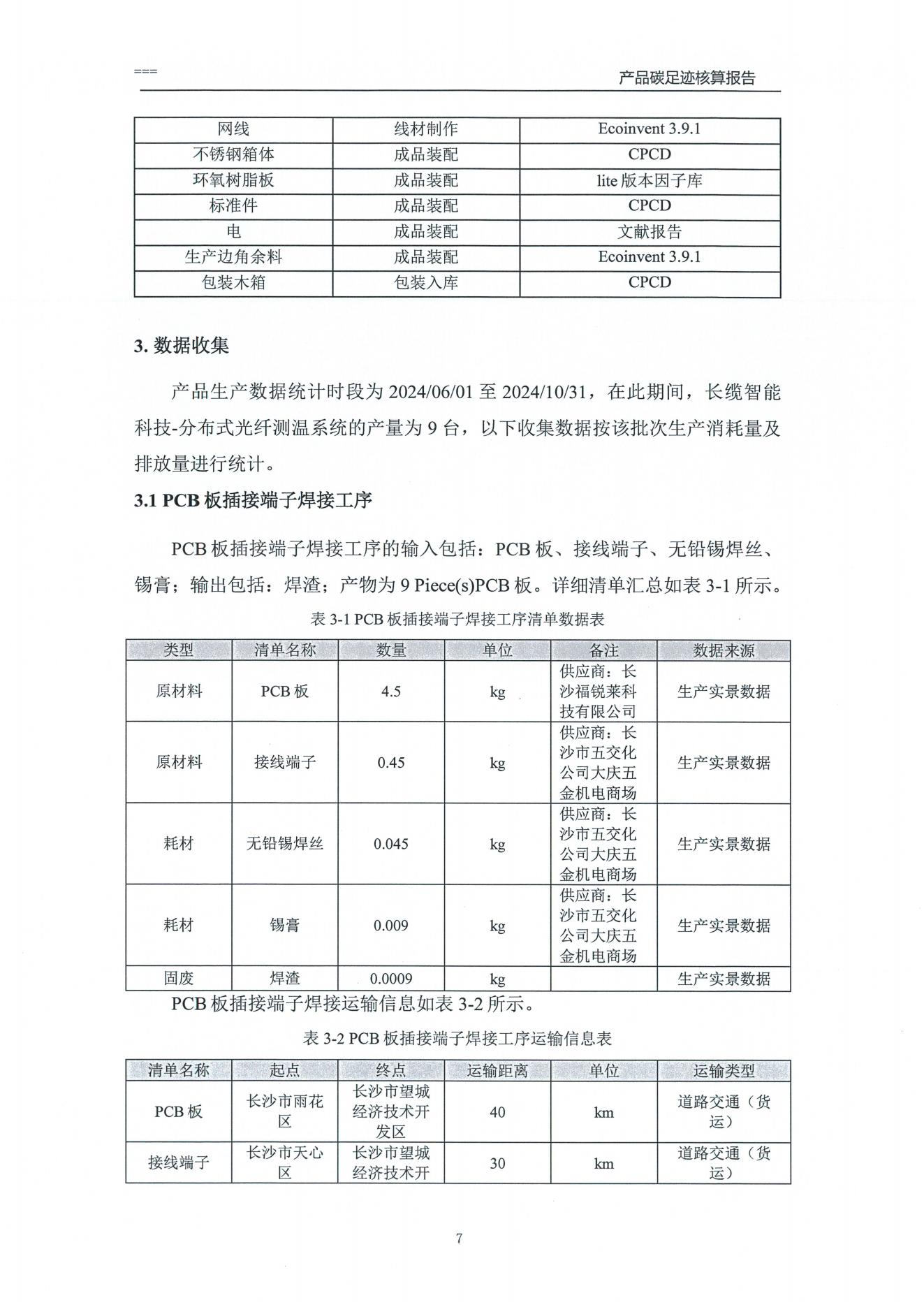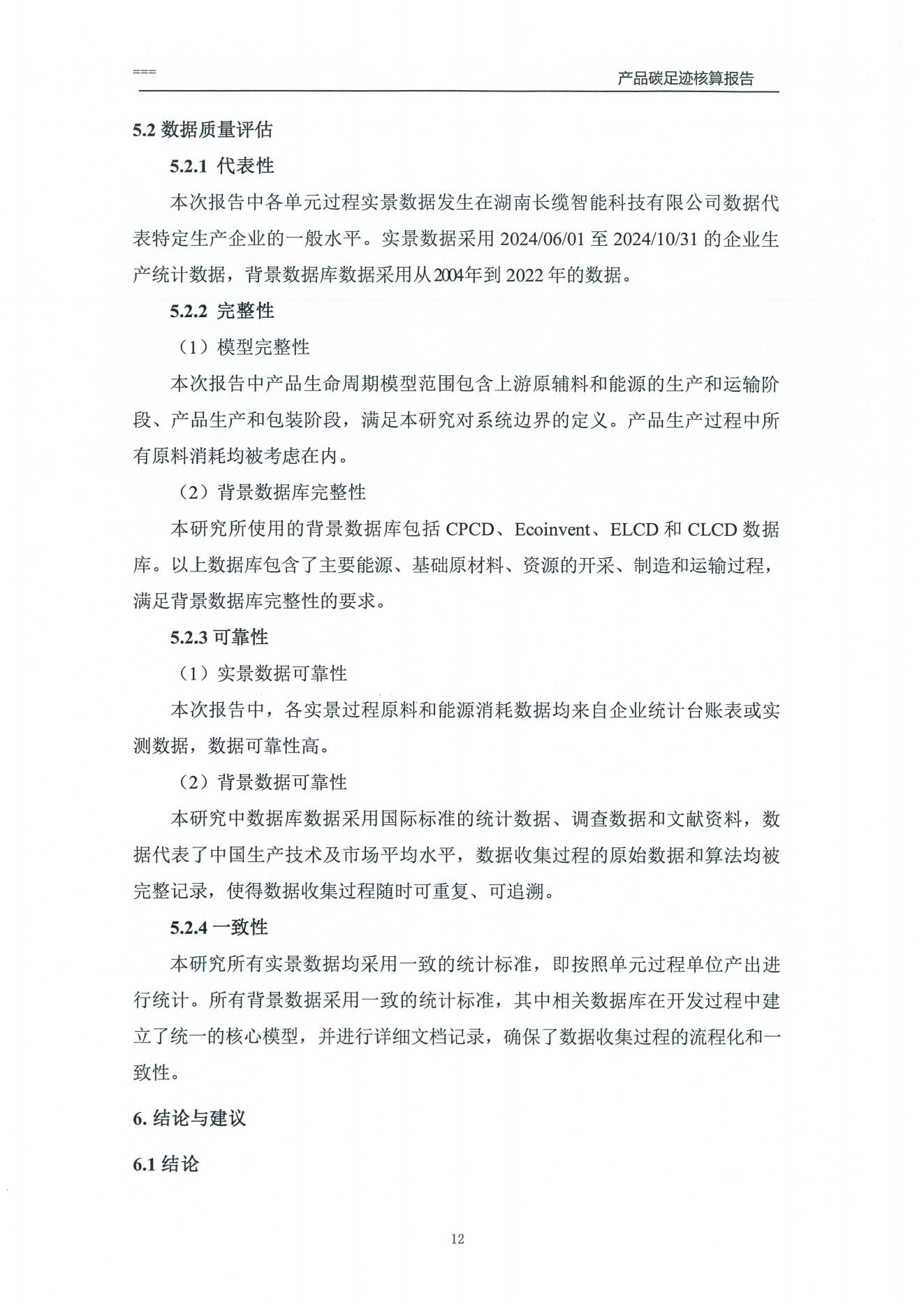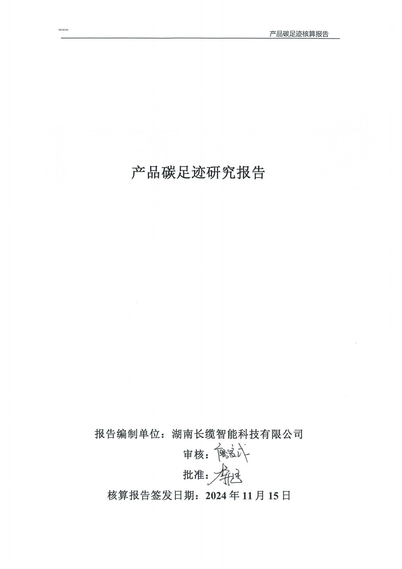 湖南長纜智能科技有限公司產(chǎn)品碳足跡研究報(bào)告信息公示