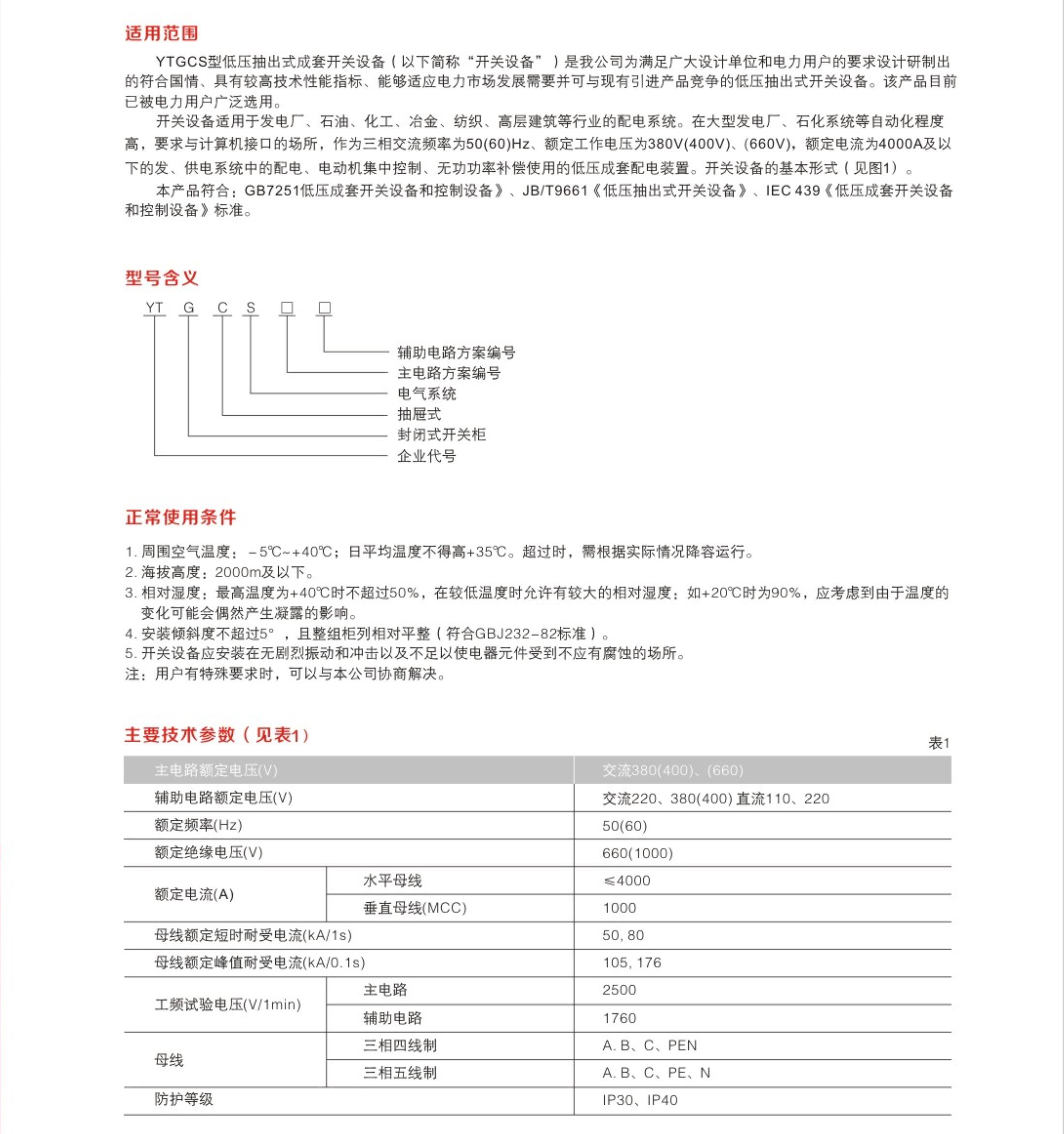 YTGCS型低壓抽出式成套開關(guān)設(shè)備