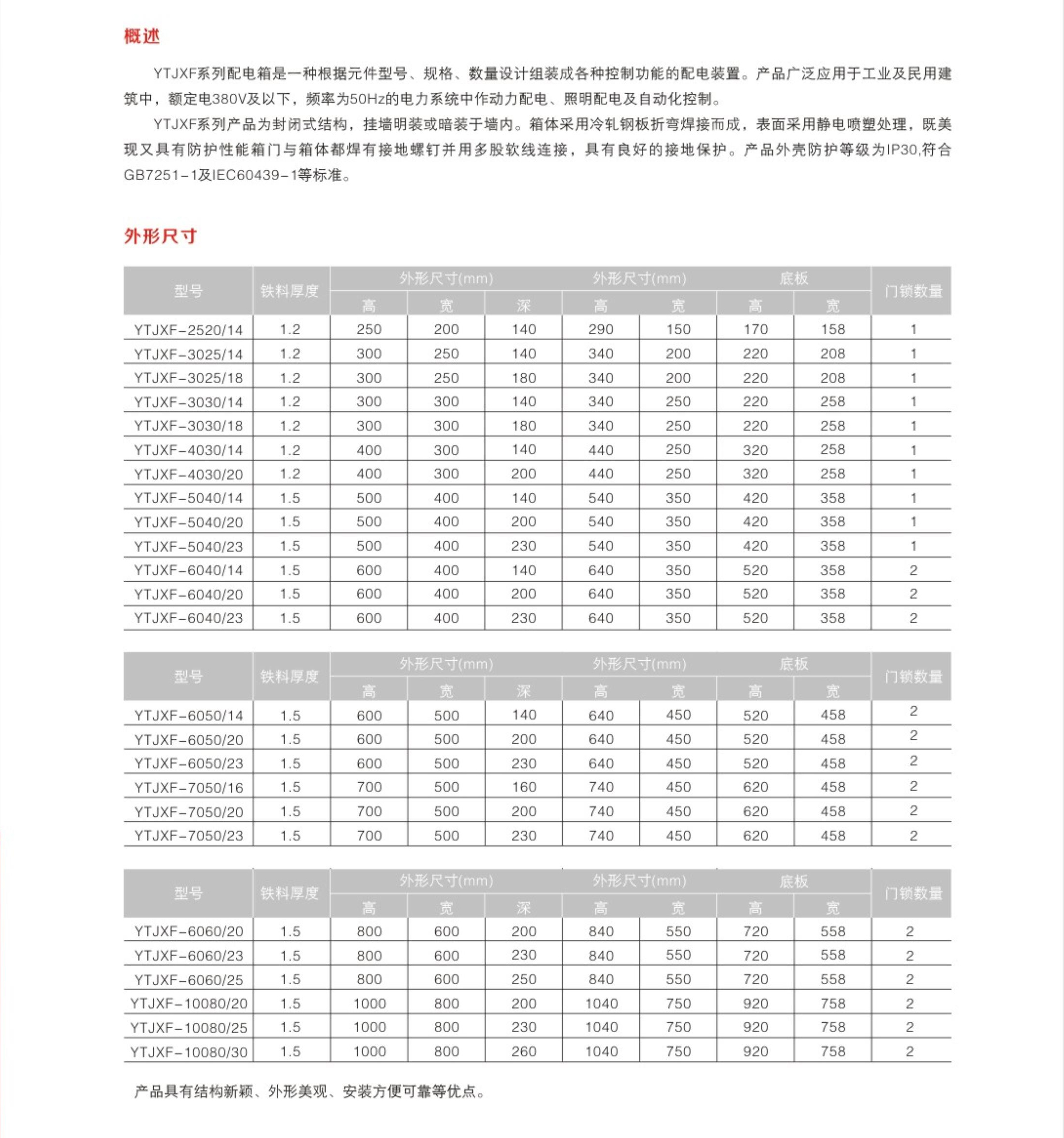 YTJXF系列配電箱是一種根據(jù)元件型號(hào)、規(guī)格、數(shù)量設(shè)計(jì)組裝成各種控制功能的配電裝置。產(chǎn)品廣泛應(yīng)用于工業(yè)及民用建筑中,額定電380V及以下,頻率為50Hz的電力系統(tǒng)中作動(dòng)力配電、照明配電及自動(dòng)化控制。