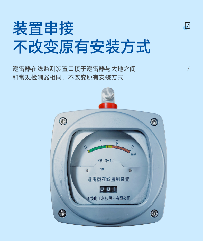 ? 避雷器在線監(jiān)測(cè)裝置串接于避雷器與大地之間,和常規(guī)檢測(cè)器相同,不改變?cè)邪惭b方式。