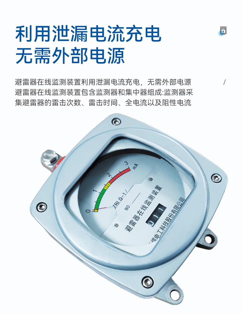 ? 避雷器在線監(jiān)測(cè)裝置利用泄漏電流充電,無需外部電源。