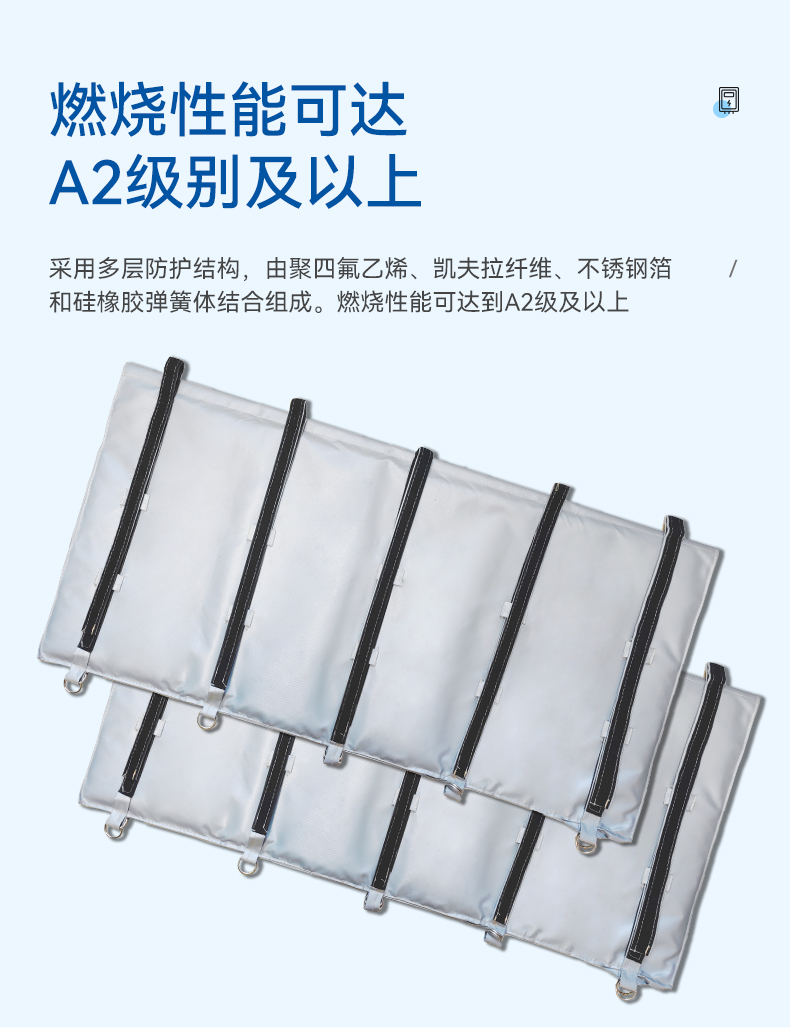 電纜防火防爆毯中間接頭外層繞包式防爆毯采用多層防護(hù)結(jié)構(gòu),由聚四氟乙烯、凱夫拉纖維、不銹鋼箔和硅橡膠彈性體結(jié)合組成。