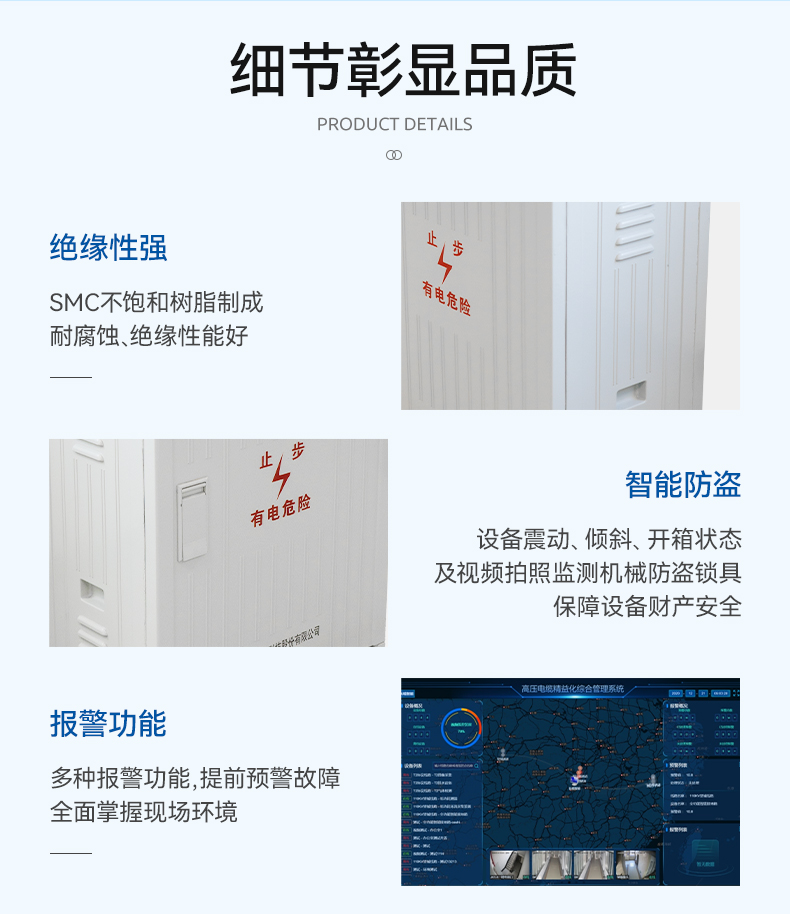 ? 箱體采用SMC不飽和樹脂制成,耐腐蝕、絕緣性能好、機(jī)械強(qiáng)度高、無回收價(jià)值,既環(huán)保又安全。
